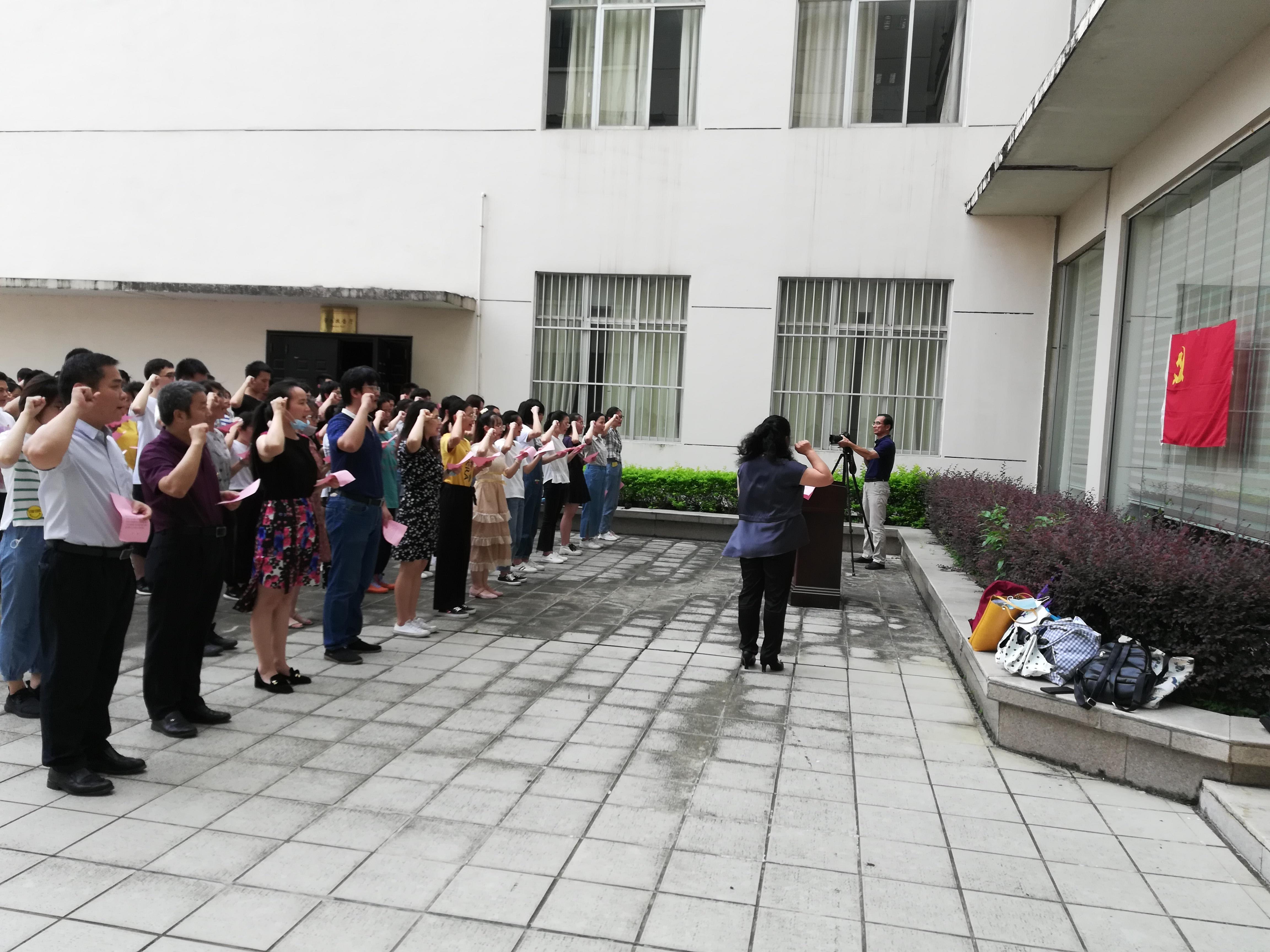 开展一次入党宣誓。7月1日下午,为激励师生党员守初心、担使命,我院组织师生党员开展新党员入党宣誓、老党员重温入党誓词活动。院党委副书记曾海艳进行领誓,全体党员举起右手,面对鲜红的党旗,庄严宣誓。通过宣誓,让全体党员感受着作为一名共产党员的自豪感与责任感,进一步增强党性意识。